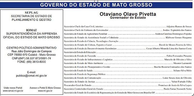 O governador Otaviano Pivetta (Republicanos) deve anunciar nesta semana os nomes de três secretários e do novo chefe do Escritório de Brasília, cargo com status de secretário. As quatro funções estão vagas desde que os titulares deixaram o Executivo estadual para disputar as eleições de outubro.